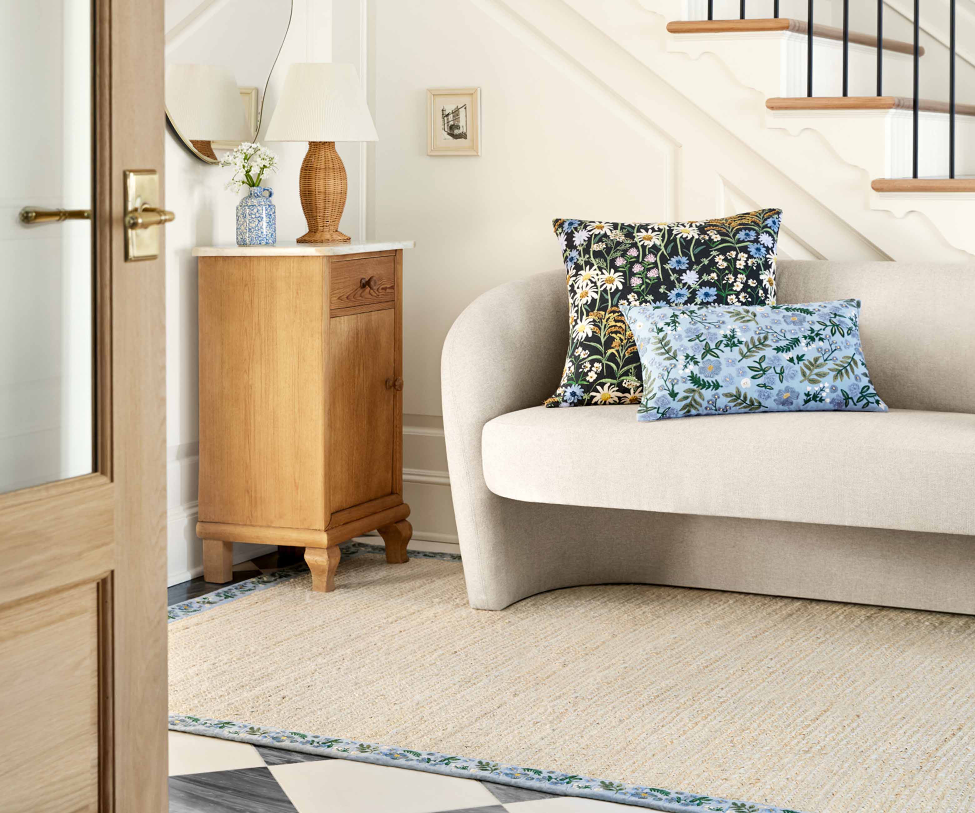 For beach houses and beyond, the Costa collection is our take on a neutral. The rugs are made of braided jute and have a cotton border featuring embroidered Rifle Paper Co. florals, for just a hint of color. Part of our Rifle Paper Co. × Loloi collaboration. The layout and scale of our rugs is adjusted to accommodate each available size, and may be different than what is pictured here. Images of each size are available by hovering over the desired size on our desktop site.