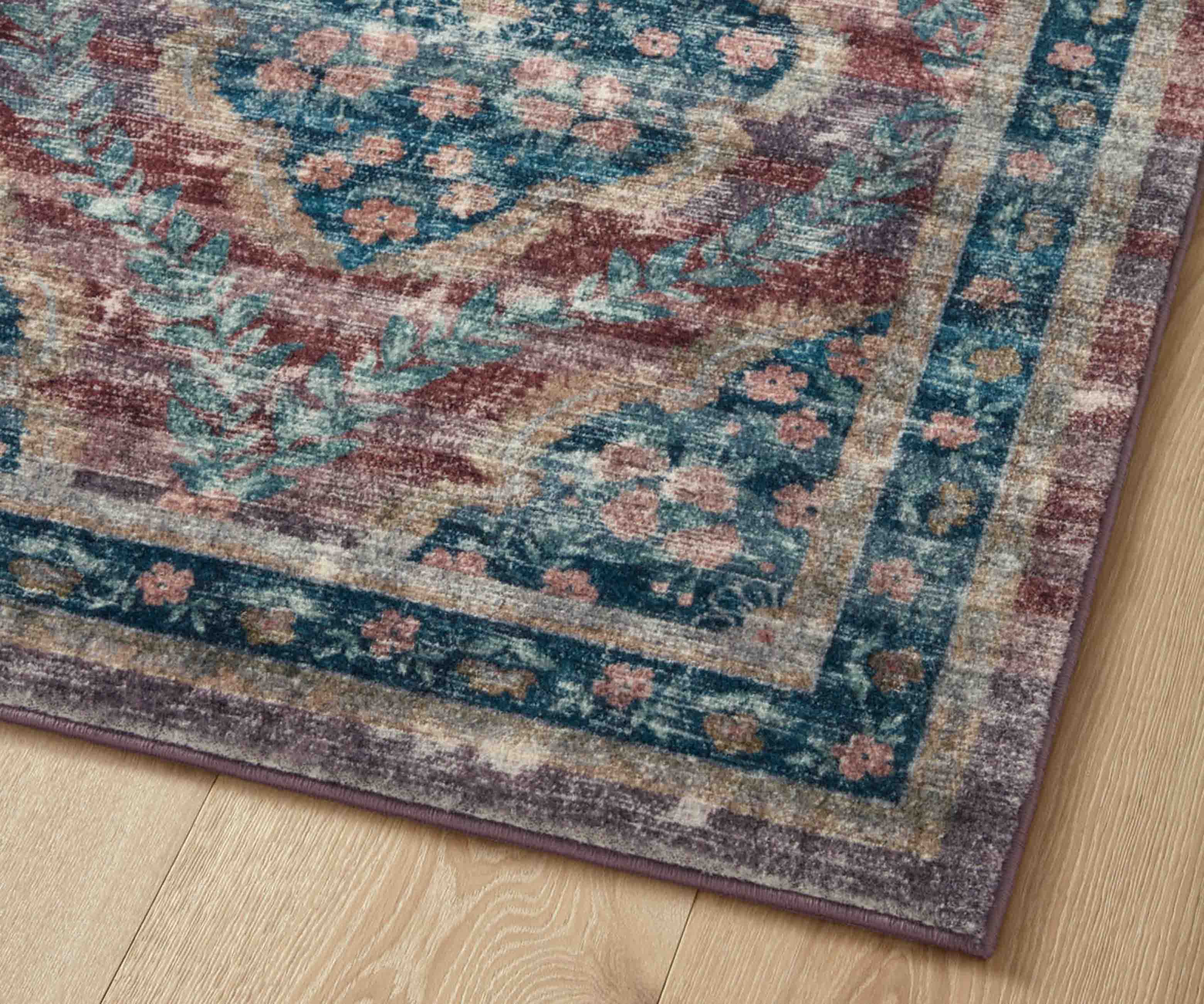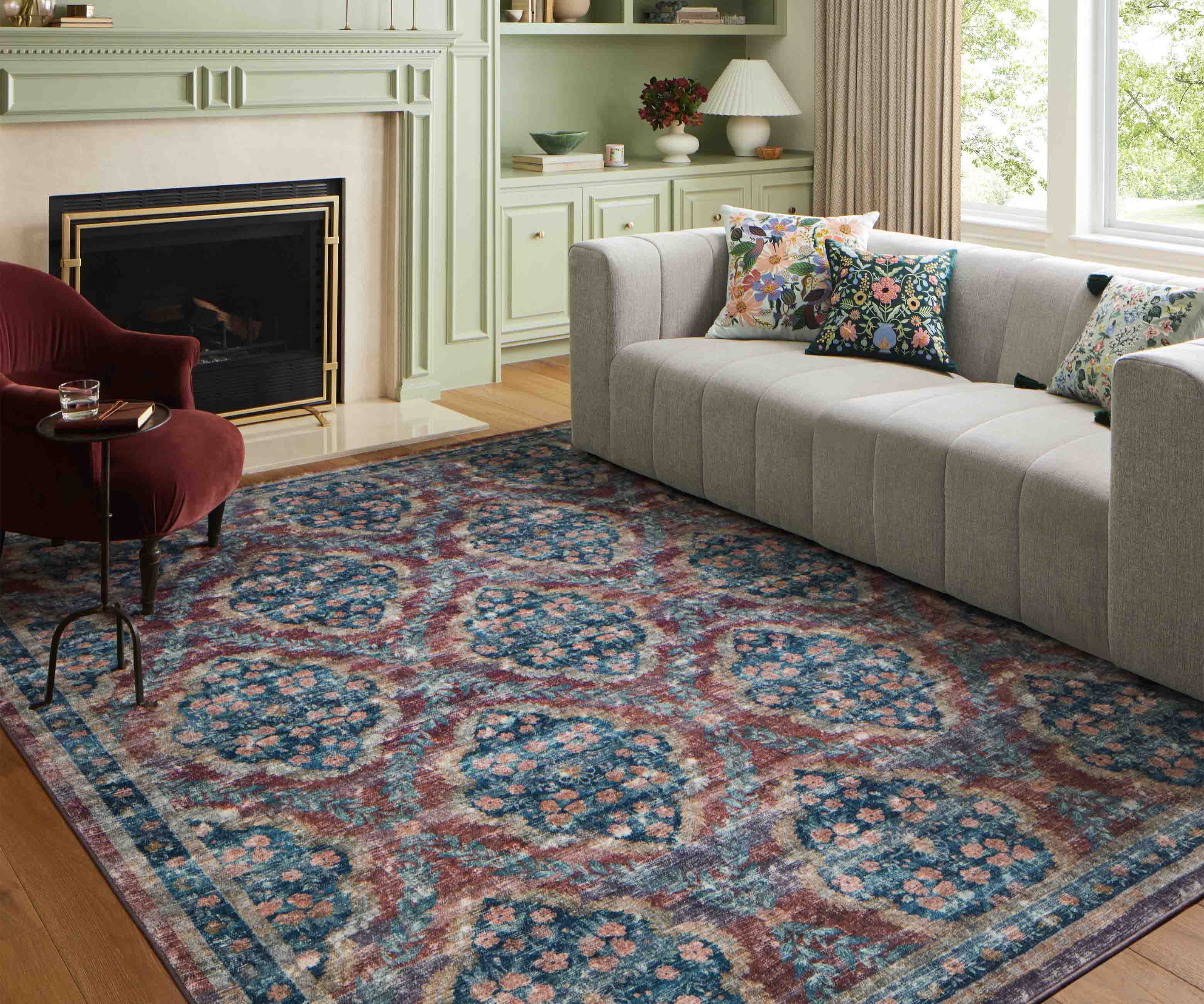 An offset grid of floral medallions creates the illusion of a curved ogee pattern on our Courtyard Chateau rug, available in both deep colorways and elegant pastels. The Courtyard collection was made with Loloi’s CloudPile? construction, an incredibly soft fabrication that combines the best of affordable printed rugs with the plushness of a pile. Part of our Rifle Paper Co. × Loloi collaboration. The layout and scale of our rugs is adjusted to accommodate each available size, and may be different than what is pictured here. Images of each size are available by hovering over the desired size on our desktop site.