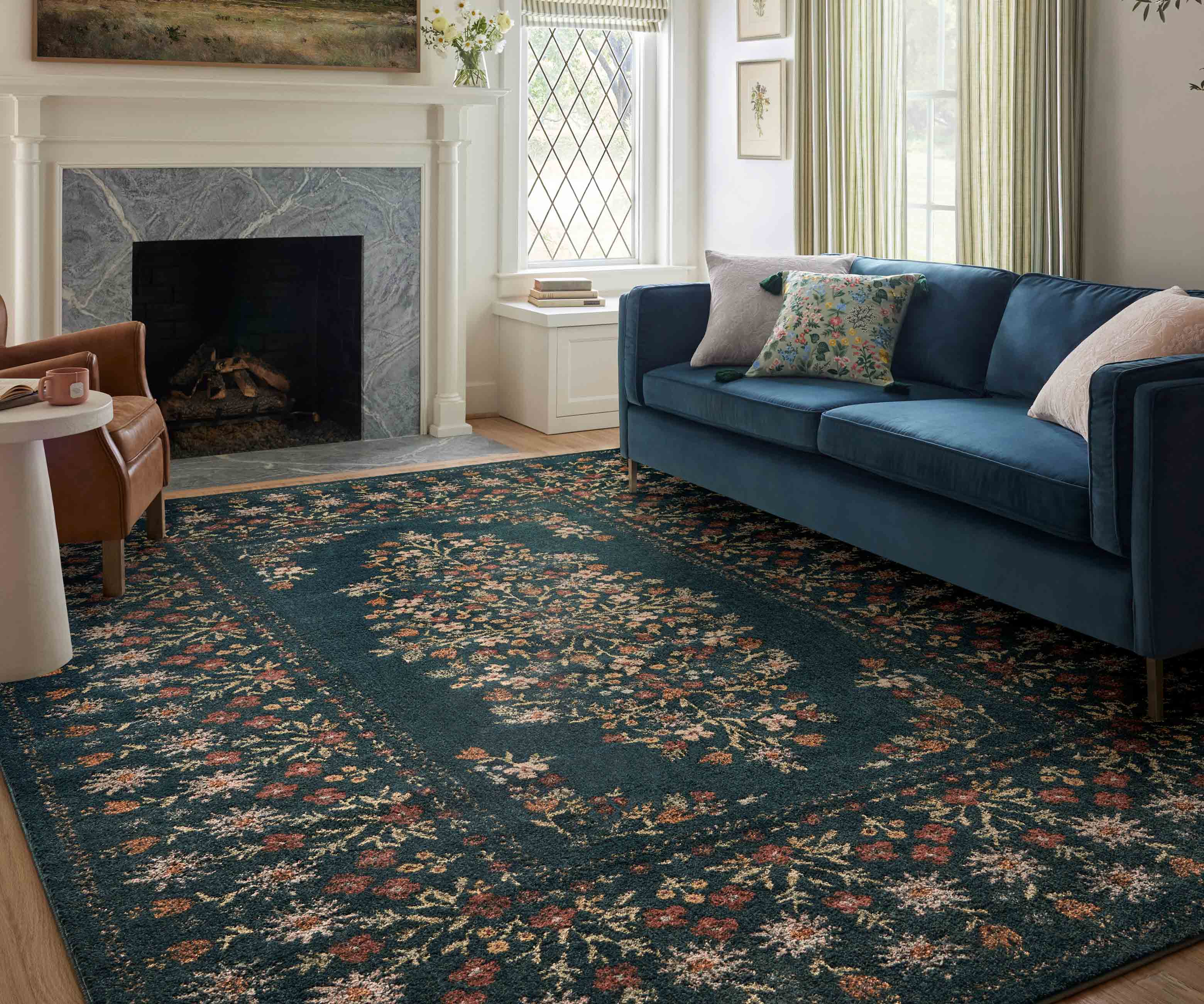 A field of delicate flowers takes on a geometric feel, with rows of small blooms creating a detailed border around a central design. The Laurel collection features elegant area rugs with muted palettes. Power-loomed for extra durability, the Laurel collection is ideal for busy living in any room of the home. The layout and scale of our rugs is adjusted to accommodate each available size, and may be different than what is pictured here. Images of each size are available by hovering over the desired size on our desktop site.