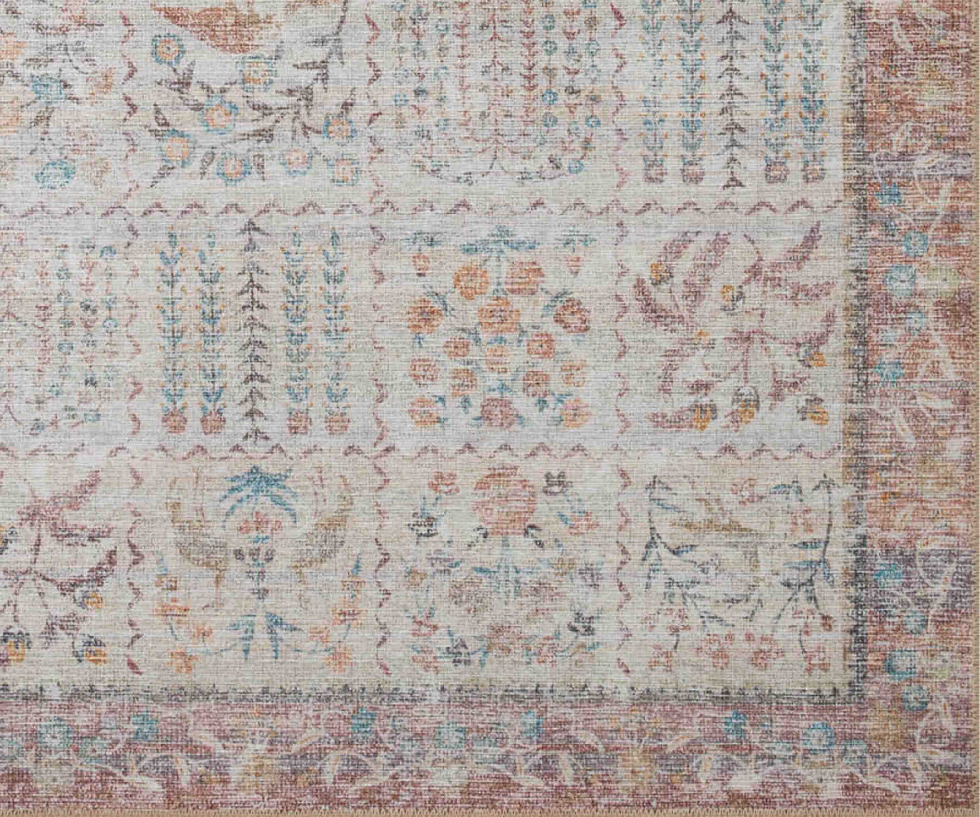 The Gallerie rug is both organized and abundant, with botanical illustrations contained in rows of neat boxes. The Maison rug collection is a power-loomed construction with a low pile that will never shed, perfect for adding a delightful accent to even the most heavily-trafficked spaces. Part of our Rifle Paper Co. × Loloi collaboration. The layout and scale of our rugs is adjusted to accommodate each available size, and may be different than what is pictured here. Images of each size are available by hovering over the desired size on our desktop site.