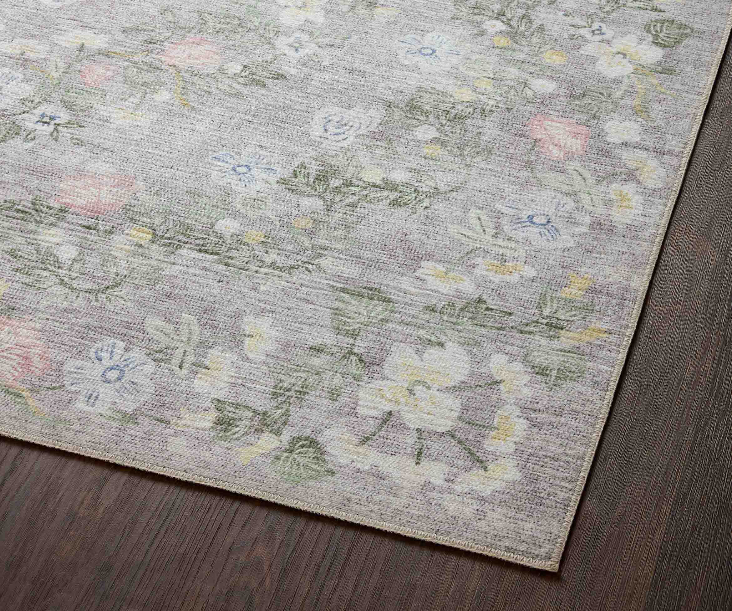 The botanical designs of the Windsor rug encircle a central medallion like a crown, dotted with beautiful blooms. The style is part of our Palais collection, which marries our signature florals with traditional motifs. Each rug features printed patterns on a soft polyester base that is both colorfast and stain resistant. The layout and scale of our rugs is adjusted to accommodate each available size, and may be different than what is pictured here. Images of each size are available by hovering over the desired size on our desktop site.