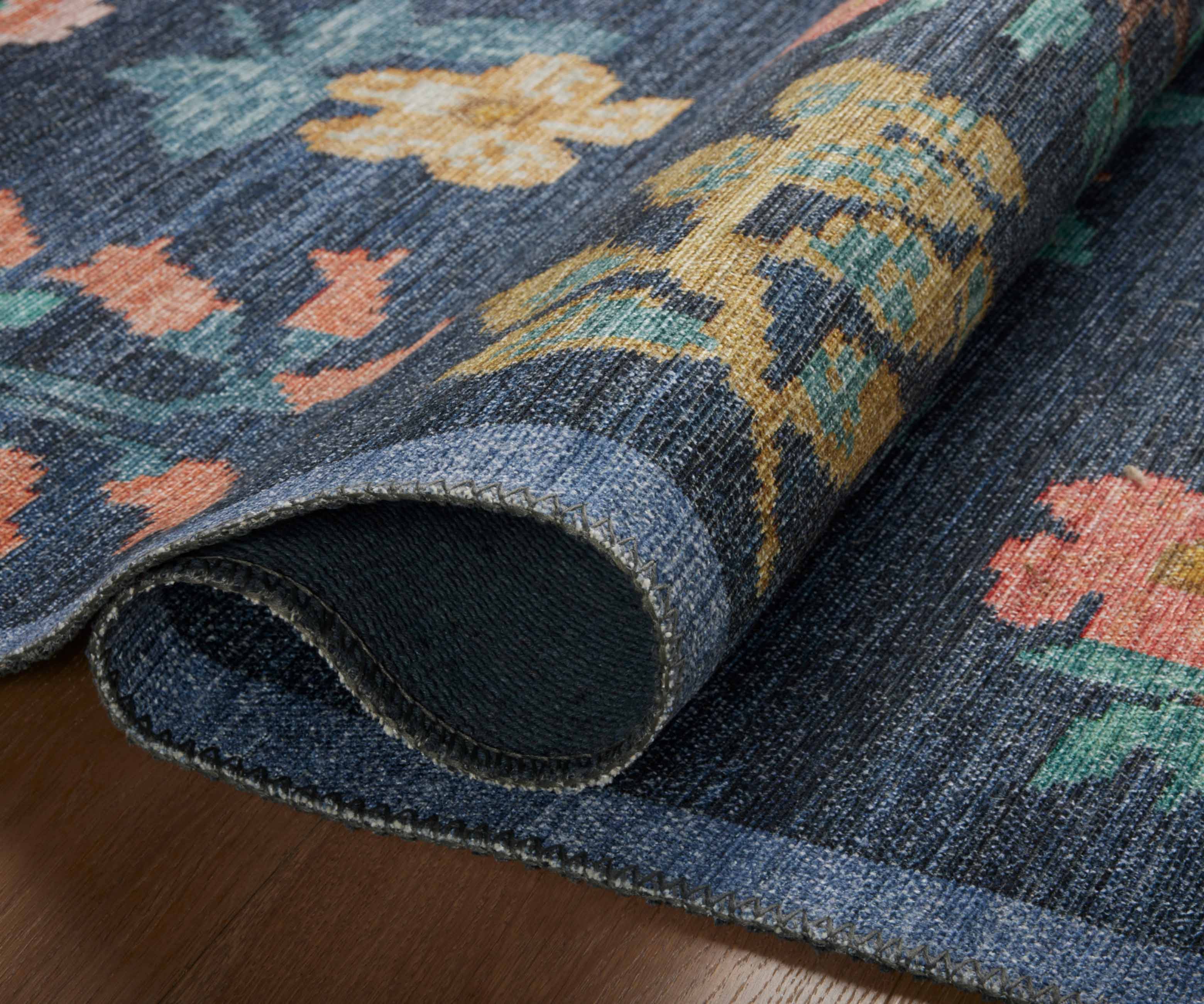 The Hawthorne rug makes a statement with its simplicity, featuring a grid of large scale blooms. The Rosa collection was inspired by folk art textiles that showcases the geometry of the traditional weaving technique. We’ve brought it to life with a power-loomed construction that is durable but still velvety-soft.